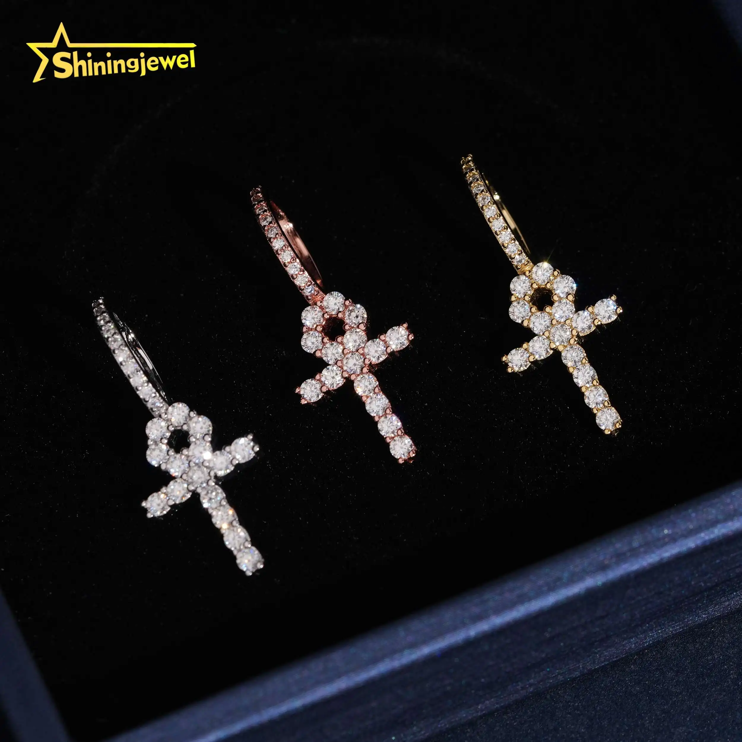 Instock Hip Hop Jewelry Fully Iced Out Pendant Cross Moissanite Pendant Charm Solid 925 Sterling Silver Cross Pendant