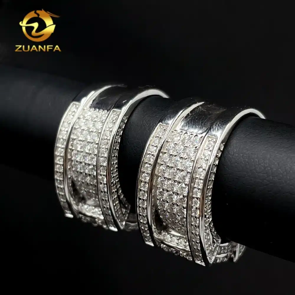Luxury Fine Jewelry Hip Hop Rapper Iced Out Mens S925 Silver Cuban Moissanite Ring