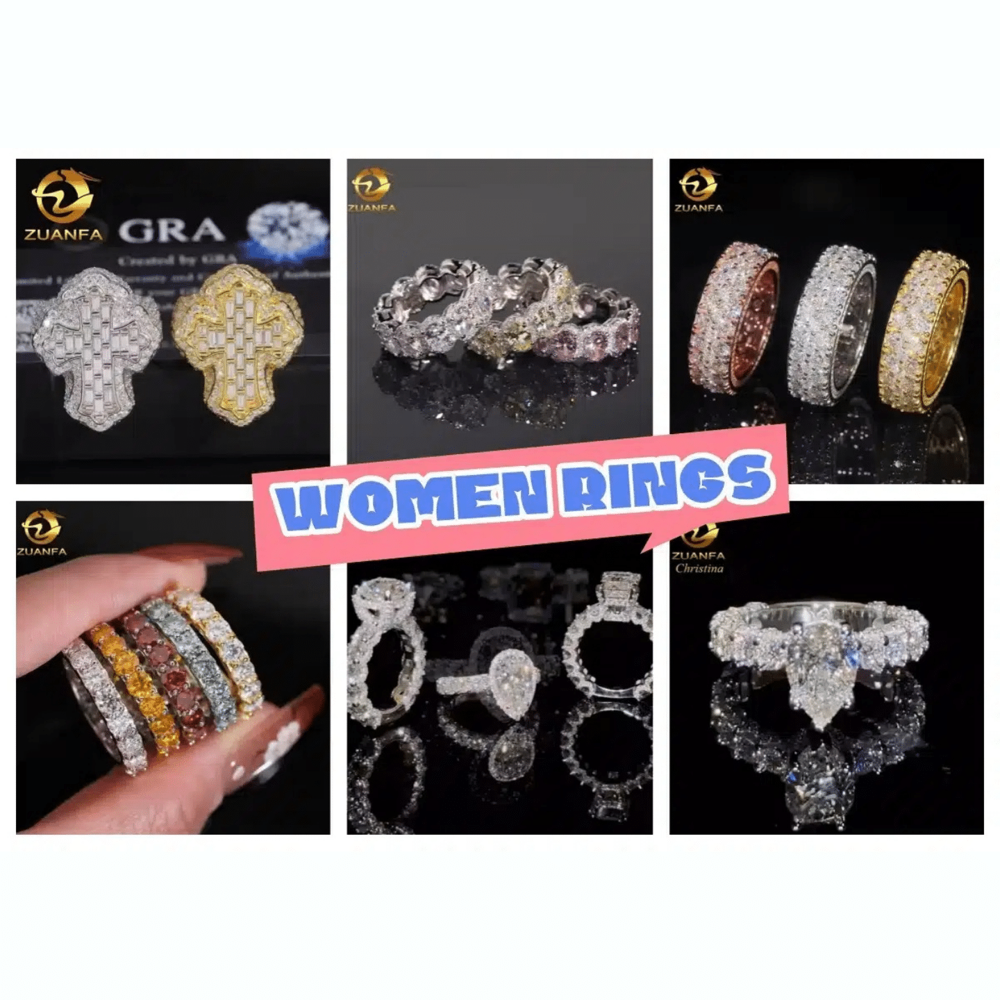 Fashion Jewelry Iced Out Hand Hip Hop GRA Certificate 925 Silver Moissanite VVS Diamond Ring