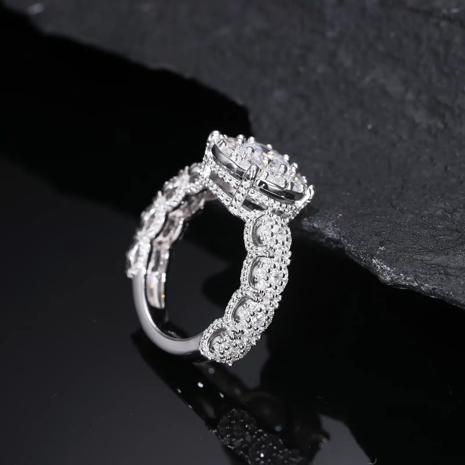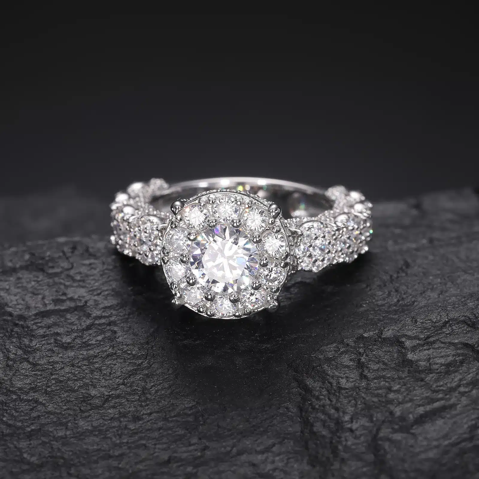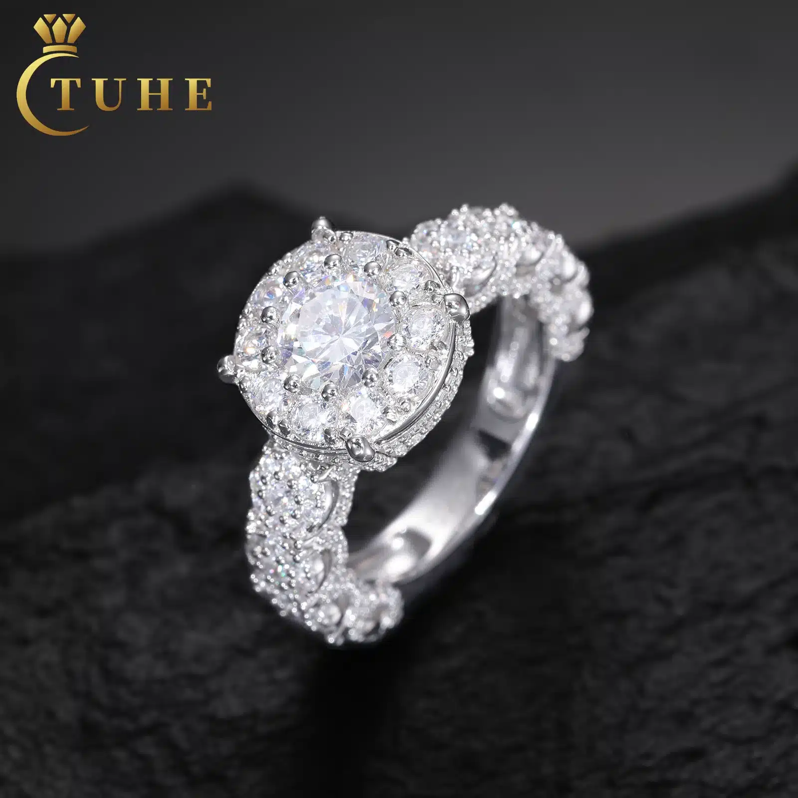 Wholesale Sparkling Wedding Jewelry White Gold 925 Sterling Silver VVS Moissanite Diamond Halo Engagement Ring for Men Women