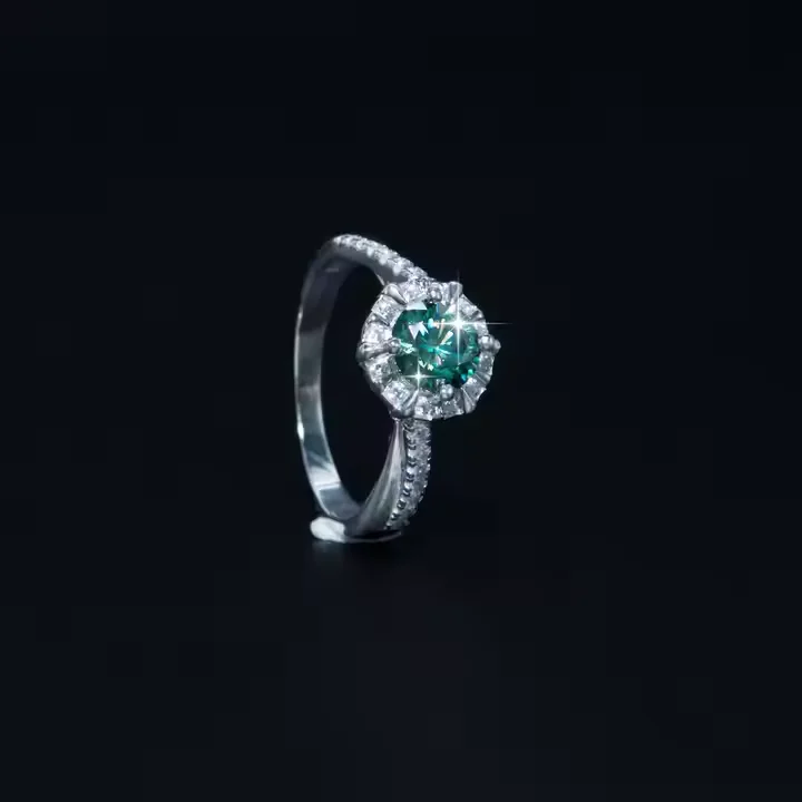 Luxury Full Moissanite 2CT VVS D Color 925 Sterling Silver Green Full Moissanite Ring Women Engagement Wedding Ring