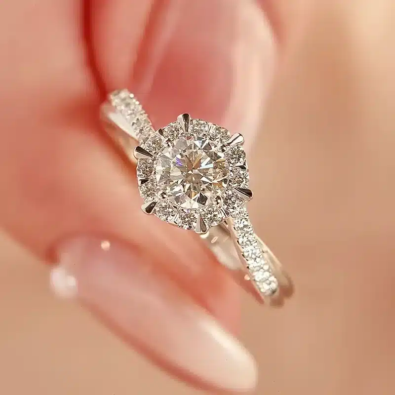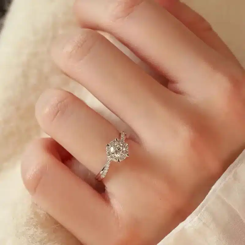 Classic 1ct Six-claw Moissanite Ring Female S925 Silver Proposal Diamond Ring Valentine’s Day Gift Adjustable Wedding Band