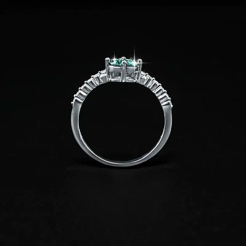 Classic Simple Four Claw Bullhead S925 Sterling Silver 5 Carat Green Moissanite Ring