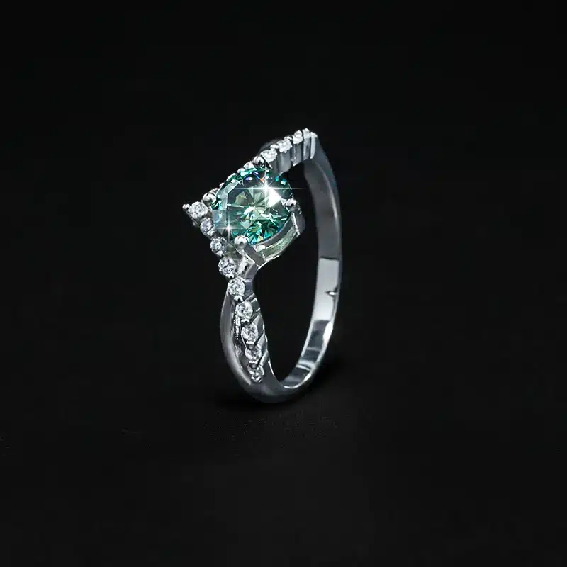 Delicate Niche Four Claw Round S925 Sterling Silver 2 Carat Green Moissanite Full Diamond Ring