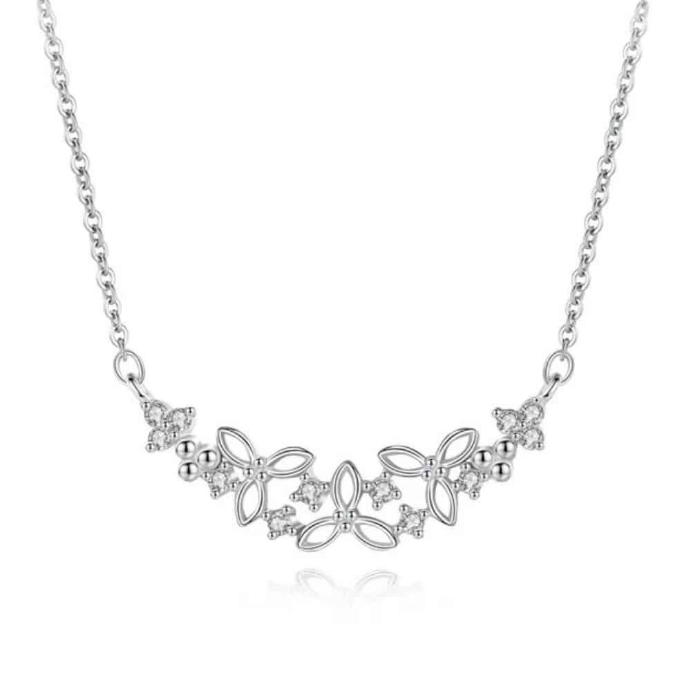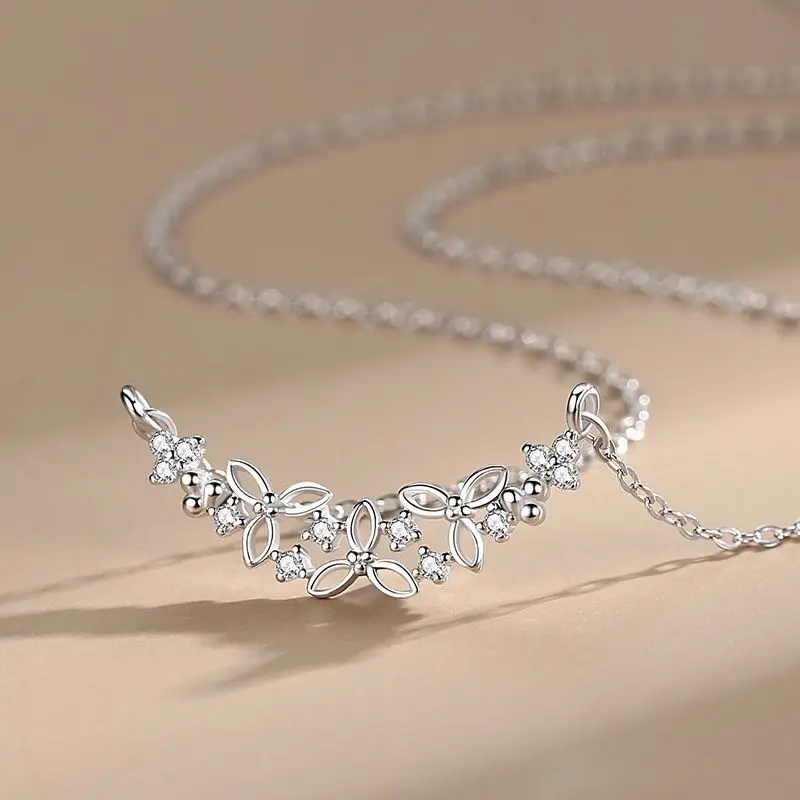 Hot Sale Elegant Zircon Pendant Necklace Jewelry 925 Sterling Silver Four Leaf Clover Charm Necklace for Women