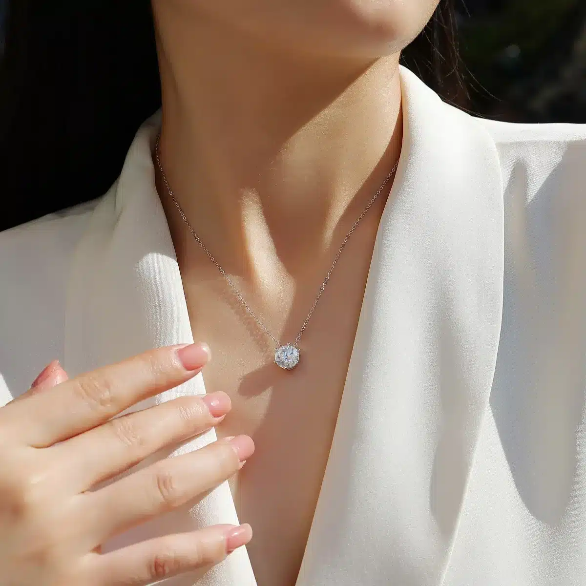 Key attributes Jewelry Main Material:Silver, 925 SILVER Material Type:925 Sterling Silver Occasion:Anniversary Gender:Women’s Jewelry Type:NECKLACES Diamond shape:Round Brilliant Cut Necklaces