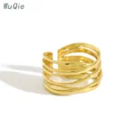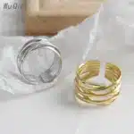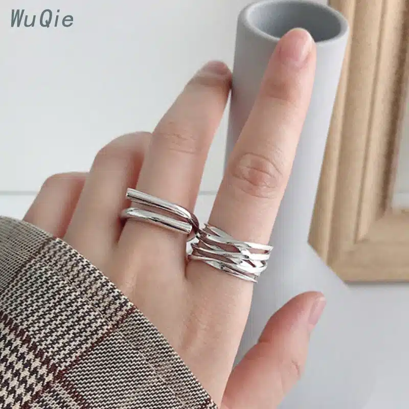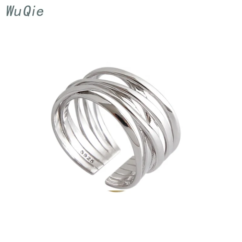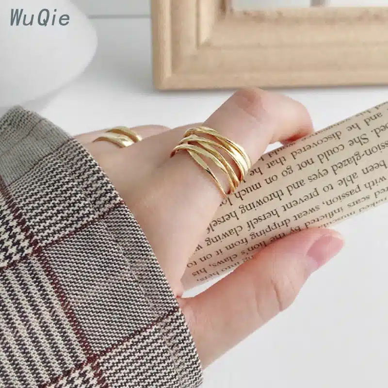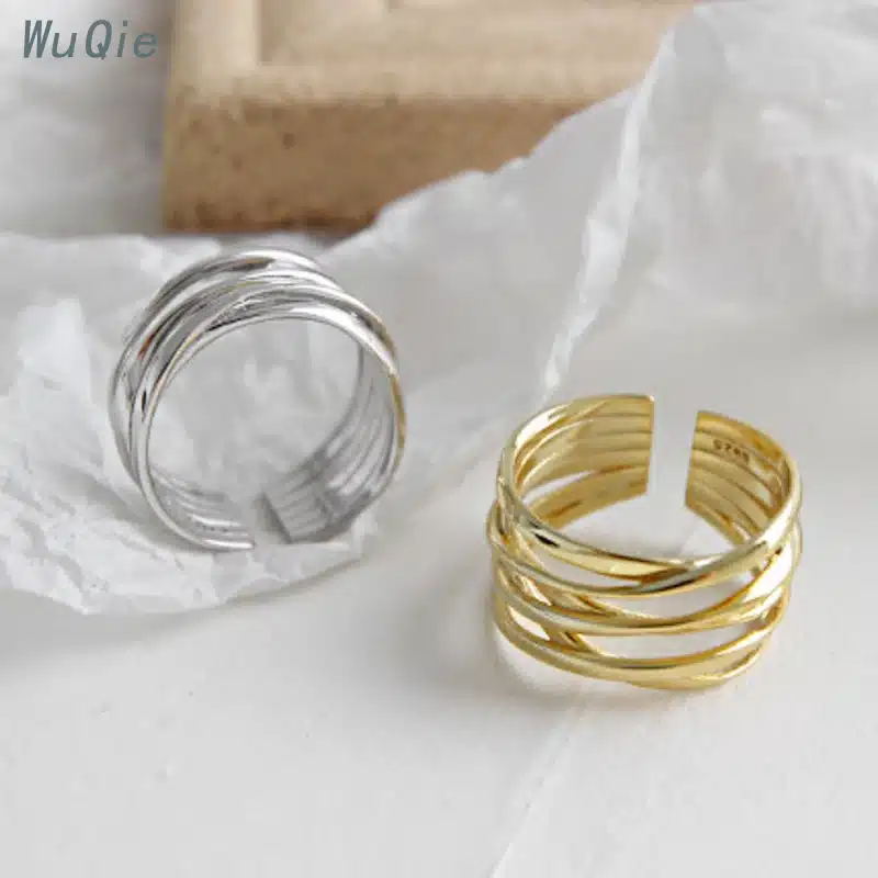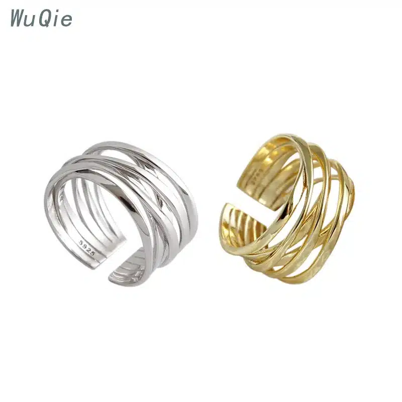 Wuqie Fashion Multi Layer Winding Line Gold Plated 925 Sterling Silver Rings Jewelry Women