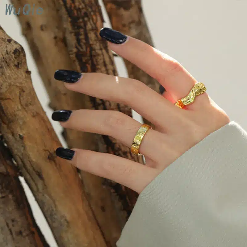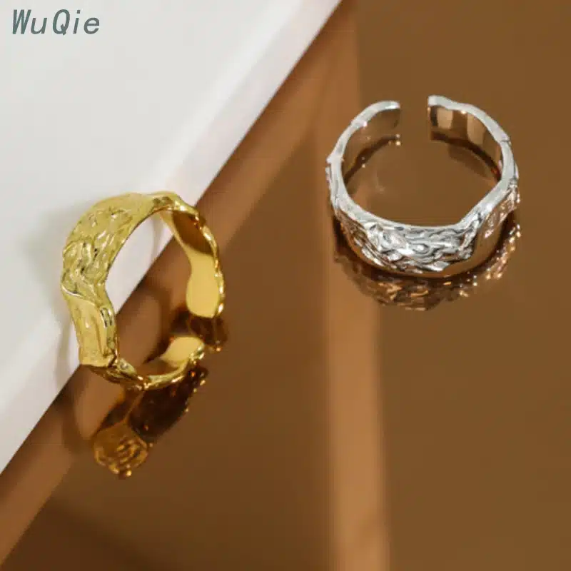 Be the first to review “Wuqie Ins Style Silver Finger Irregular Concave-convex Ring Gold Plated Tin Foil Paper Texture Wave Ring” Cancel reply