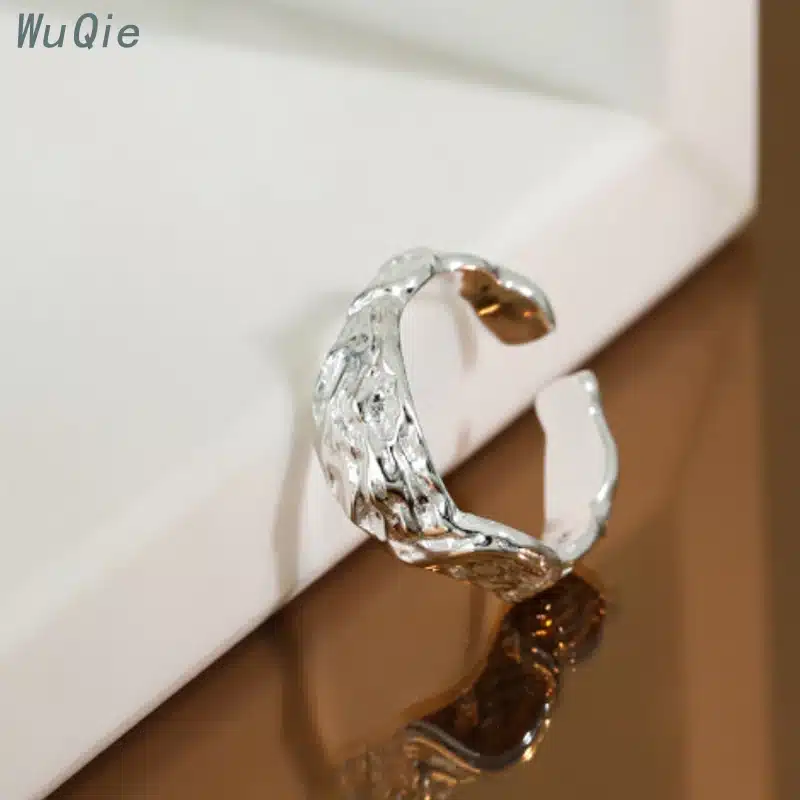 Wuqie 925 Sterling Silver Irregular Bump Surface Texture Wide Pleated Texture Opening Adjustable Rings Jewelry for Women