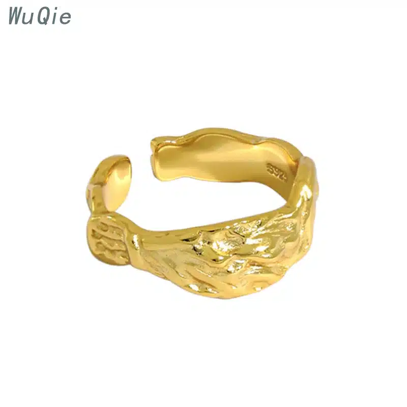 Wuqie Ins Style Silver Finger Irregular Concave-convex Ring Gold Plated Tin Foil Paper Texture Wave Ring