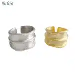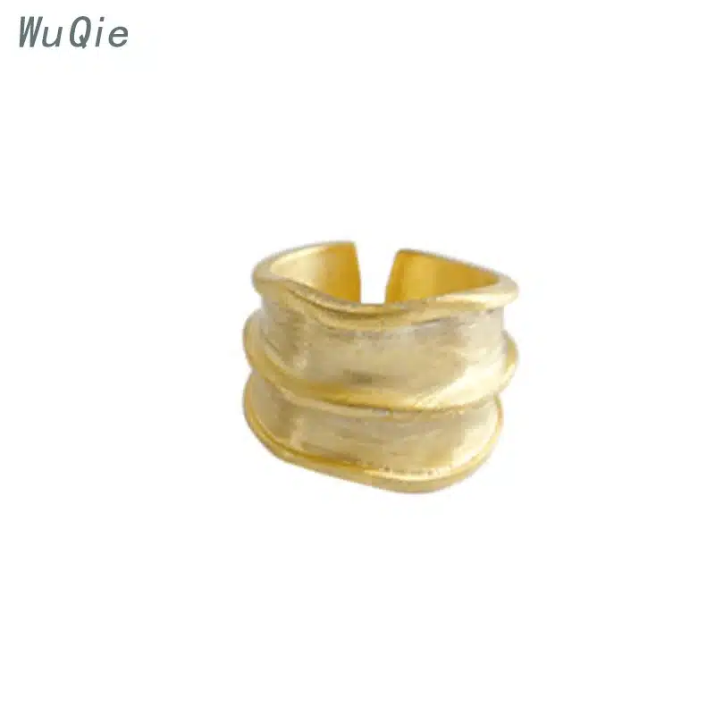 Wuqie Ins Style Silver Finger Irregular Concave-convex Ring Gold Plated Tin Foil Paper Texture Wave Ring