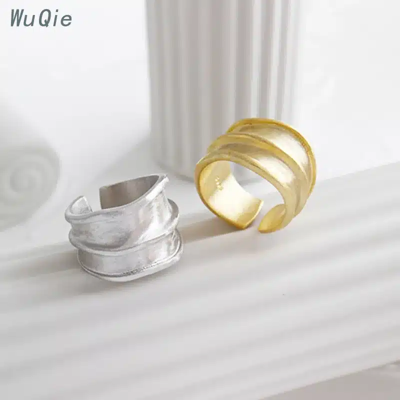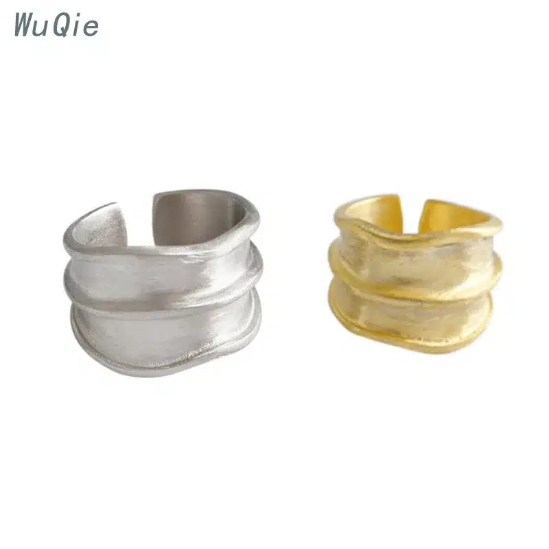 Wuqie 925 Sterling Silver Irregular Bump Surface Texture Wide Pleated Texture Opening Adjustable Rings Jewelry for Women