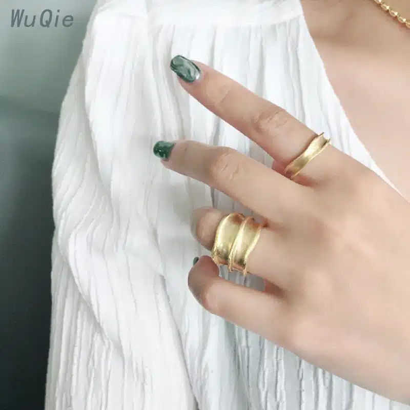 Wuqie Fashion Multi Layer Winding Line Gold Plated 925 Sterling Silver Rings Jewelry Women