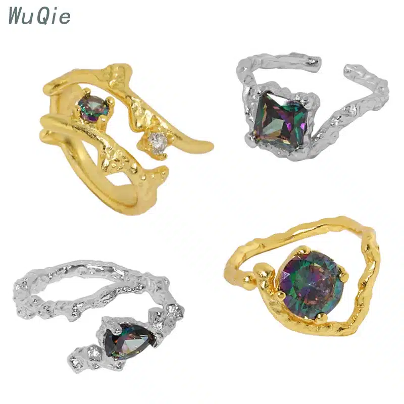 Wuqie S925 Sterling Silver CZ Open Ring Lava Finger Ring Rhinestone Irregular Ring for Women
