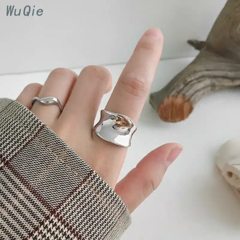Wuqie 925 Sterling Silver Jewelry Personality Ring Fashion Jewelry Irregular Glossy Ring