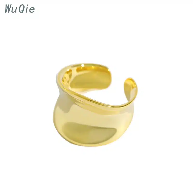 WuQie Popular Women Jewelry Finger Rings Concave Smooth Gold Plated 925 Sterling Silver Ring