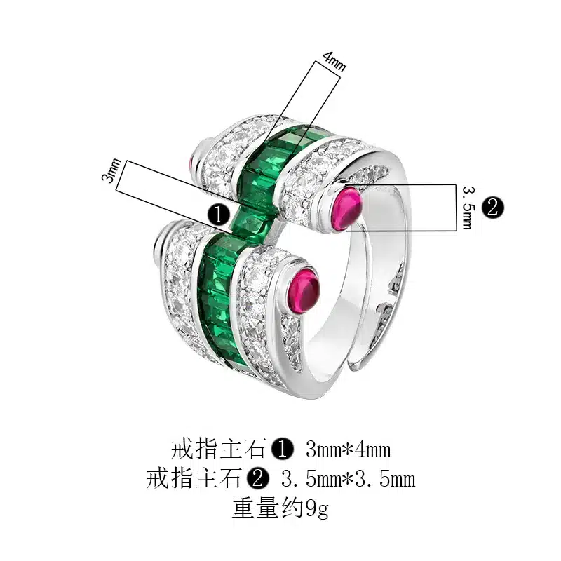 XILIANGFEIZI 2025 New Style Jewelry Copper Gold-plated Imitation Green Crystal Ring for Women in Stock, Birthday Gift 14*16