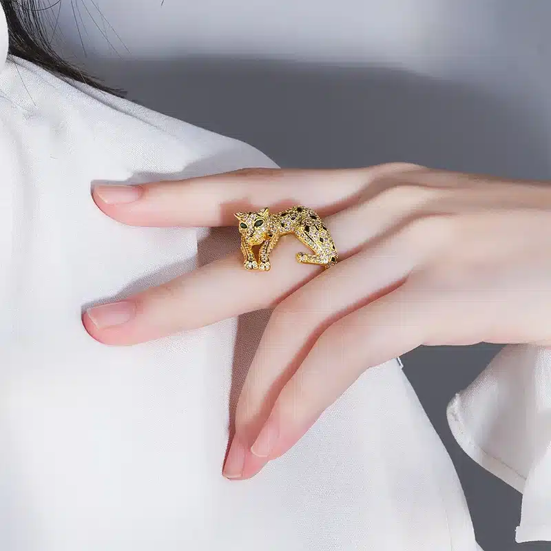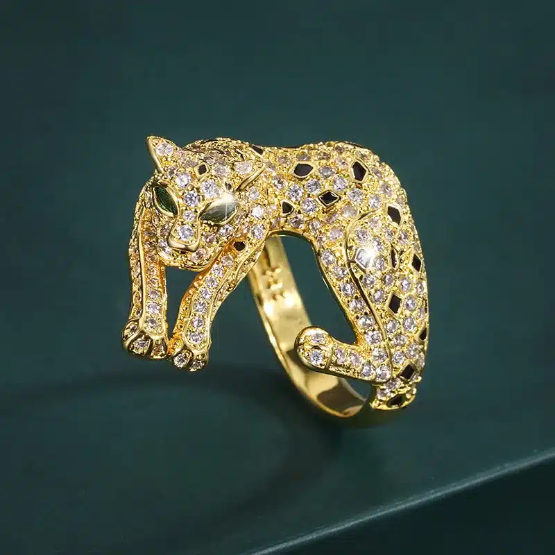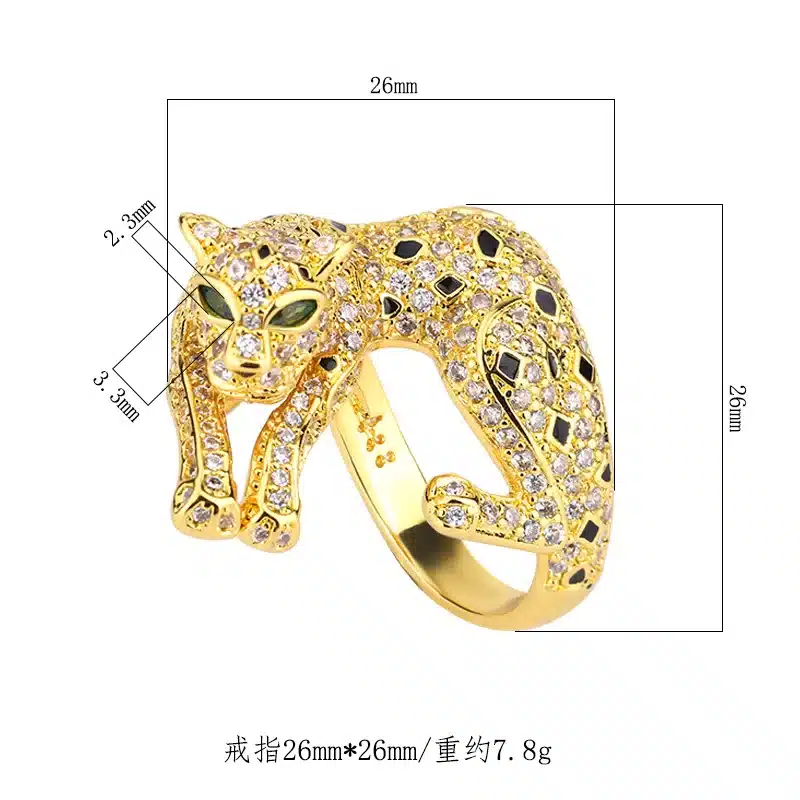 XILIANGFEIZI New Jewelry Brass Gold Plated Crystal Luxury Leopard Personality Ring 6*8 Wholesale