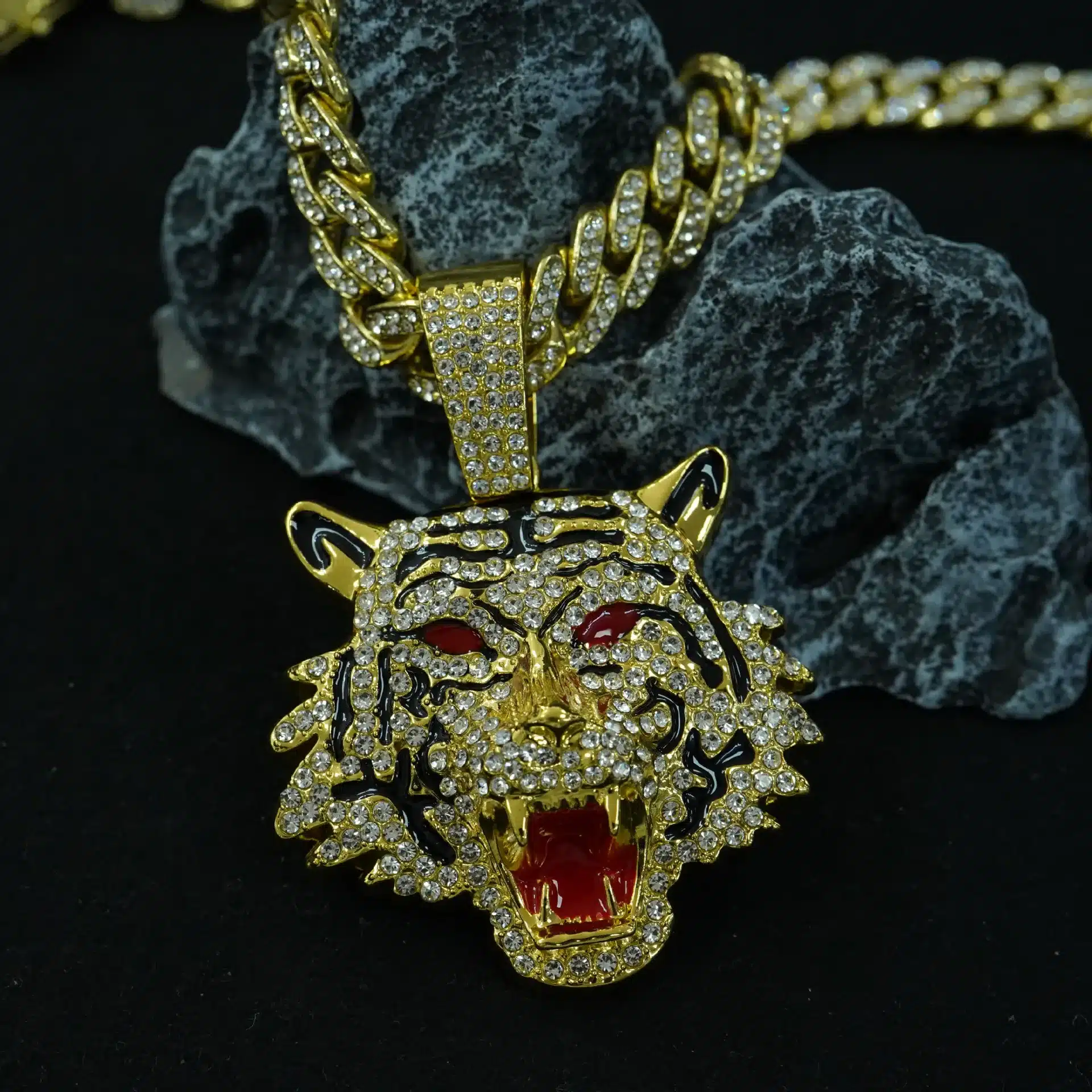 Be the first to review “XILIANGFEIZI Men’s Vintage Style Full Drill Tiger Head Pendant Red Eyes Red Mouth Drop Oil Hip Hop Personality Factory Wholesale” Cancel reply