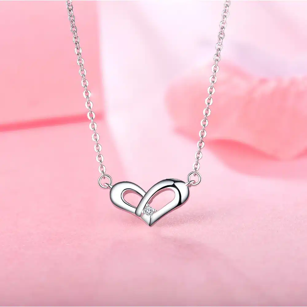 925 Sterling Silver Female Necklace Heart Shape Cubic Zircon Rhodium Plated Jewelry Infinity Heart Necklaces for Women