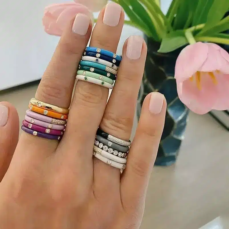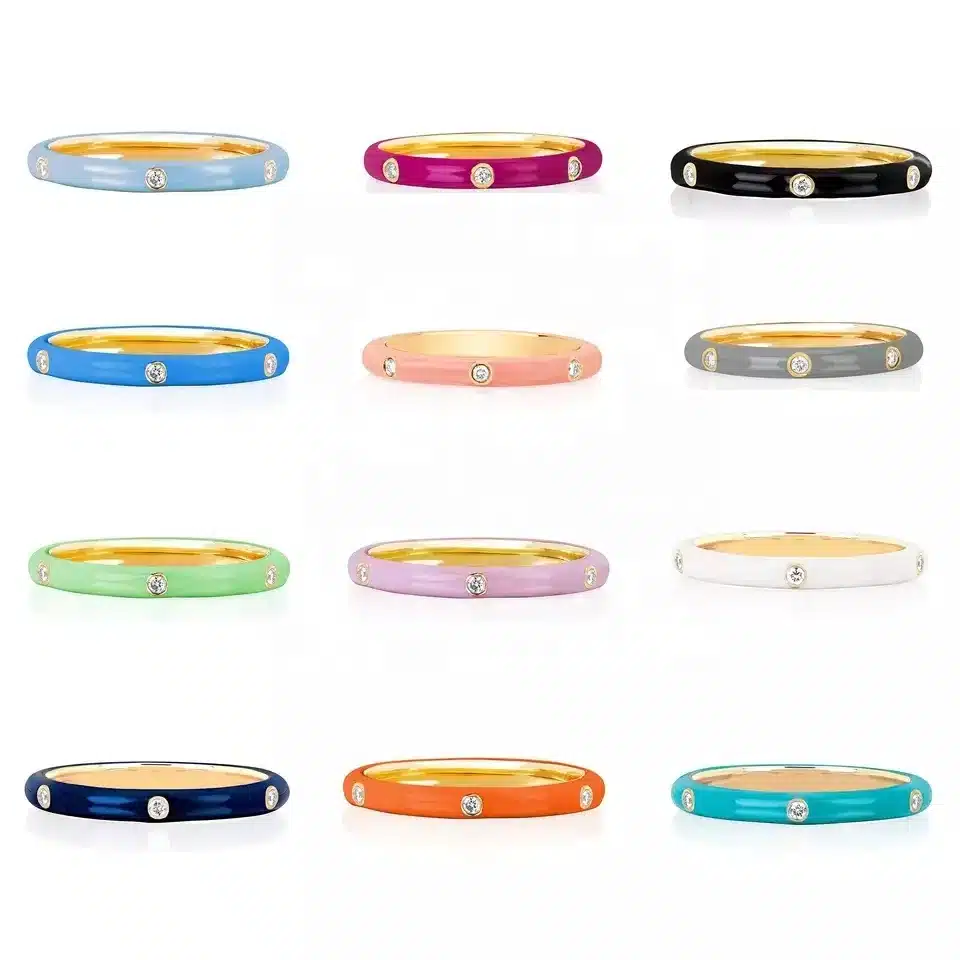 YINJU 925 Sterling Silver Custom Colorful Gold Plated Enamel Diamond Ring Women