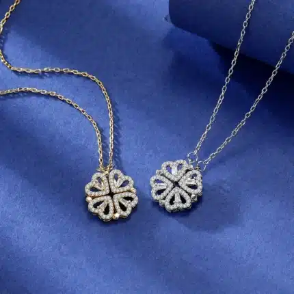 OEM Women Four Heart Leaves Necklace 18k Gold Silver Jewelry Mama Pendant Crystal Open Heart Necklace for Girls