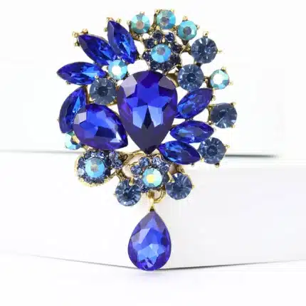 Vintage Wedding Bride Big Blue Crystal Drop Colorful Flower Rhinestone Teardrop Brooch for Woman