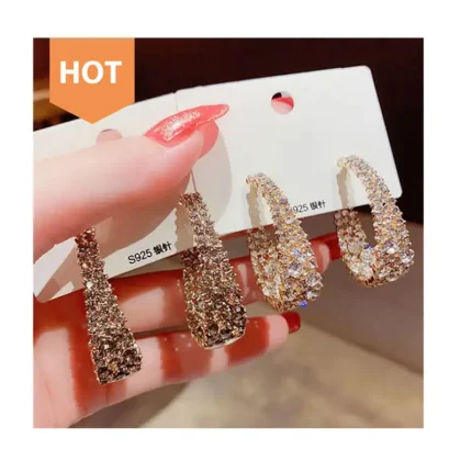 Key attributes Earrings Type:Hoop Earrings Style:Trendy Jewelry Main Material:Alloy Gender:Women’s Main Stone:Crystal, Rhinestone Jewelry Type:Earrings