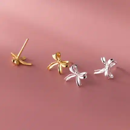 Wholesale Fashion Minimalist Jewelry 925 Sterling Silver Bowknot Bow Knot Gold Plated Stud Earrings Jewelry for Women