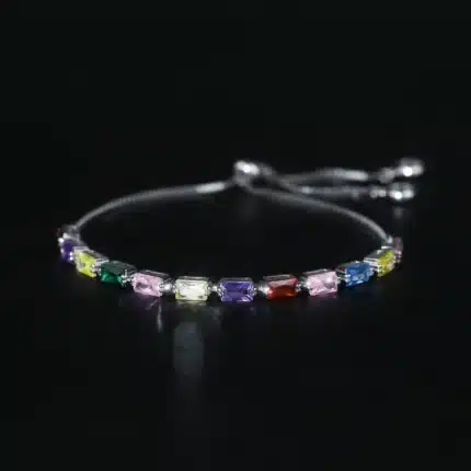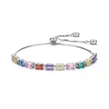 Wholesale Friendship 925 Sterling Silver Fashion Women Men Shape 2mm 3mm 4mm Adjustable Zirconia rainbow Tennis Bracelet