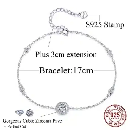 Wholesale Jewelry 925 Sterling Silver Bracelet Custom Made Women’s Charm Heart Round Bracelets Zircon Geometric Charm Bracelet