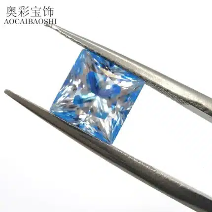 Wholesale Price Hand Cut Princess Square Moissanite by Moissanite Test Plated Blue square Loose Bare Stone Stone 5-10mm Spot Sale
