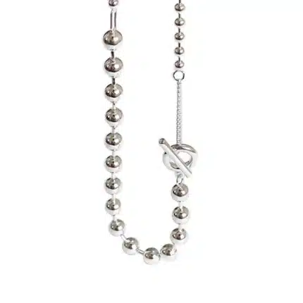 Wuqie 925 Sterling Silver Beaded Splicing Chain Necklace OT Toggle Clasp Necklace Women Fashion Chocker