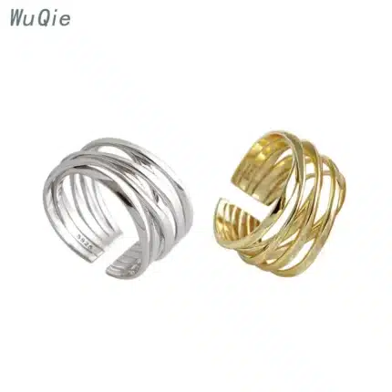 Wuqie Fashion Multi Layer Winding Line Gold Plated 925 Sterling Silver Rings Jewelry Women