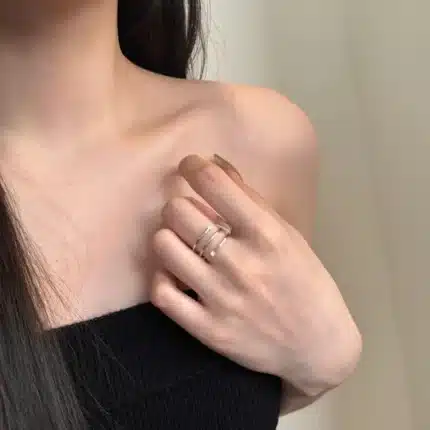 Dylam Personalized Statement Jewelry 925 Sterling Silver Multiple Layer Eternity Band 5A Cubic Zirconia Twisted Dress up Rings
