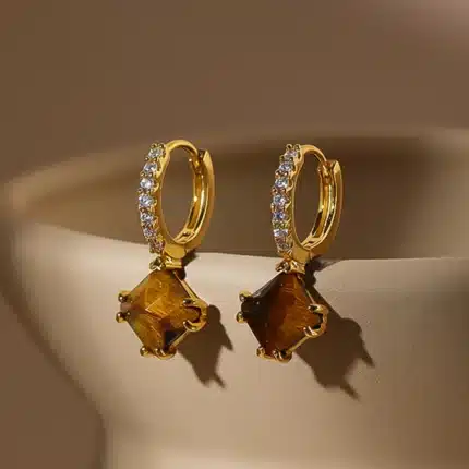 Trendy 925 Sterling Silver Dangle Earrings 18K Gold Plated Natural Square Shape Gemstone American Diamond Inlay Fashion Jewelry