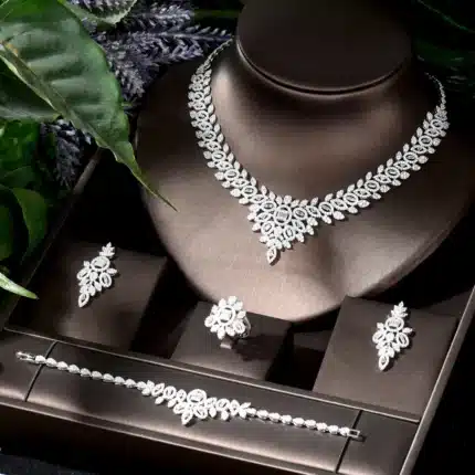 High Quality Jewelry Set Elegant Shiny Saudi Arabia Bridal Wedding Zircon Necklace 4-piece Set