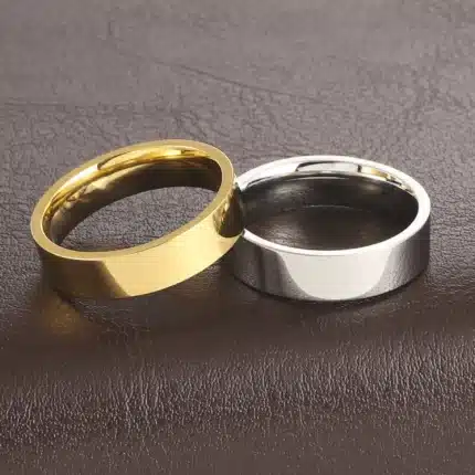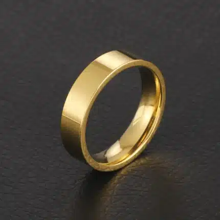 Men’s and Women’s Stainless Steel Simple Couple Ring Glossy Gold Plated Wedding Jewelry Gift