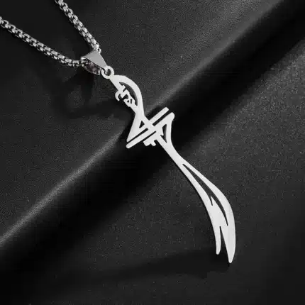 Pearl Necklace Pendant Stainless Steel Islamic Muslim Zulfikar Imam for Ali Sword Diamond Snake Chain for Men’s Gift Pendant