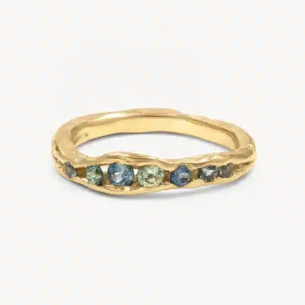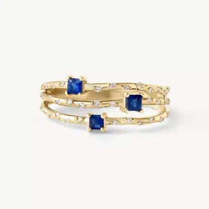LOZRUNVE 925 Sterling Silver Gold Vintage Handmade Hammered Band Colored Sapphire Ring Jewelry