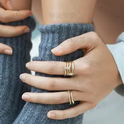 LOZRUNVE Fashion Body Jewelry Gold Statement Minimal Double Wave Band Ring Silver 925