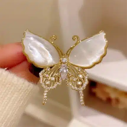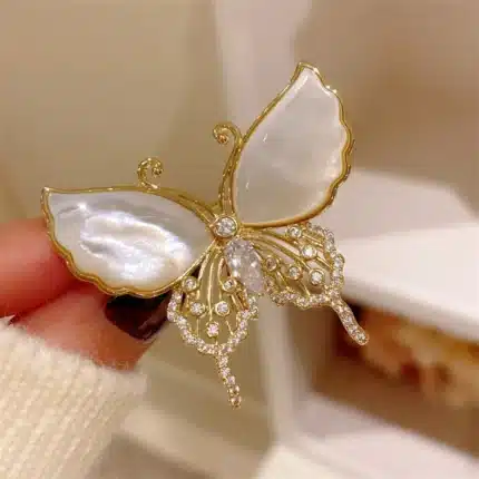 Rinhoo Elegant Natural Shell Crystal Brooch Pin Butterfly Wings Women Suit Rhinestone Brooch Pins Elegant Clothing Accessories