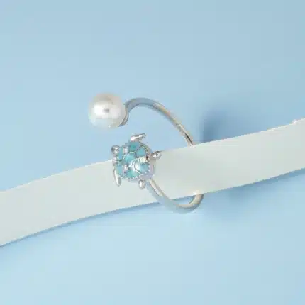 Cute Wholesale 925 Sterling Silver Sea Life Series Enamel Blue Ocean Turtle Pearl Open Rings Adjustable Bulk in Stock for Girls